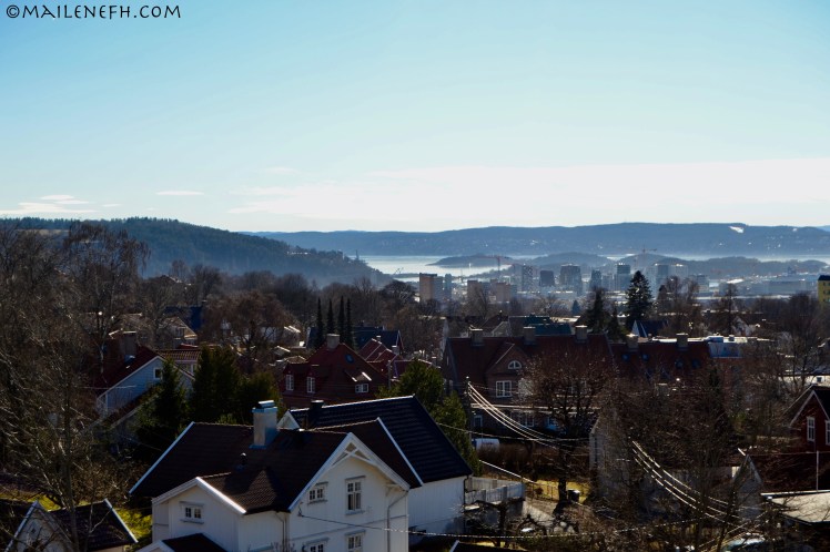 I tillegg viser jo Oslo seg fram frå si beste side for tida, noko som gjer det endå vanskelegare å forstå at eg skal reise herfrå snart. Eigentleg hadde eg planar om å gå meg ein lang tur i dag og ta bilete som eg kan sitje å sjå på når eg saknar Oslo. Dessverre vart eg sett ut av noko som enten er allergi eller forkjølelse. Men eg har mange andre fine bilete frå Oslo, som til dømes desse to av utsikten frå takterassen der eg bur. Begge bileta er tatt 26. mars då det var sol og tjue grader. Nesten slik som i dag.